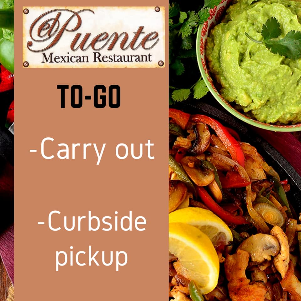 El Puente Mexican Restaurant open for your at home dining pleasure! Call 417-883-4502.