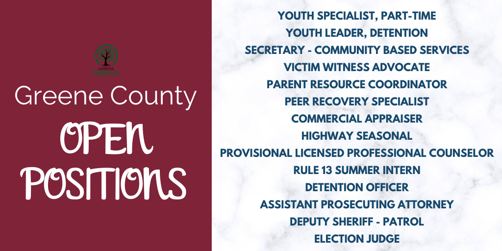 Greene County is hiring! Check out our current openings today at https://mo-greenecounty.civicplushrms.com/careers/ !