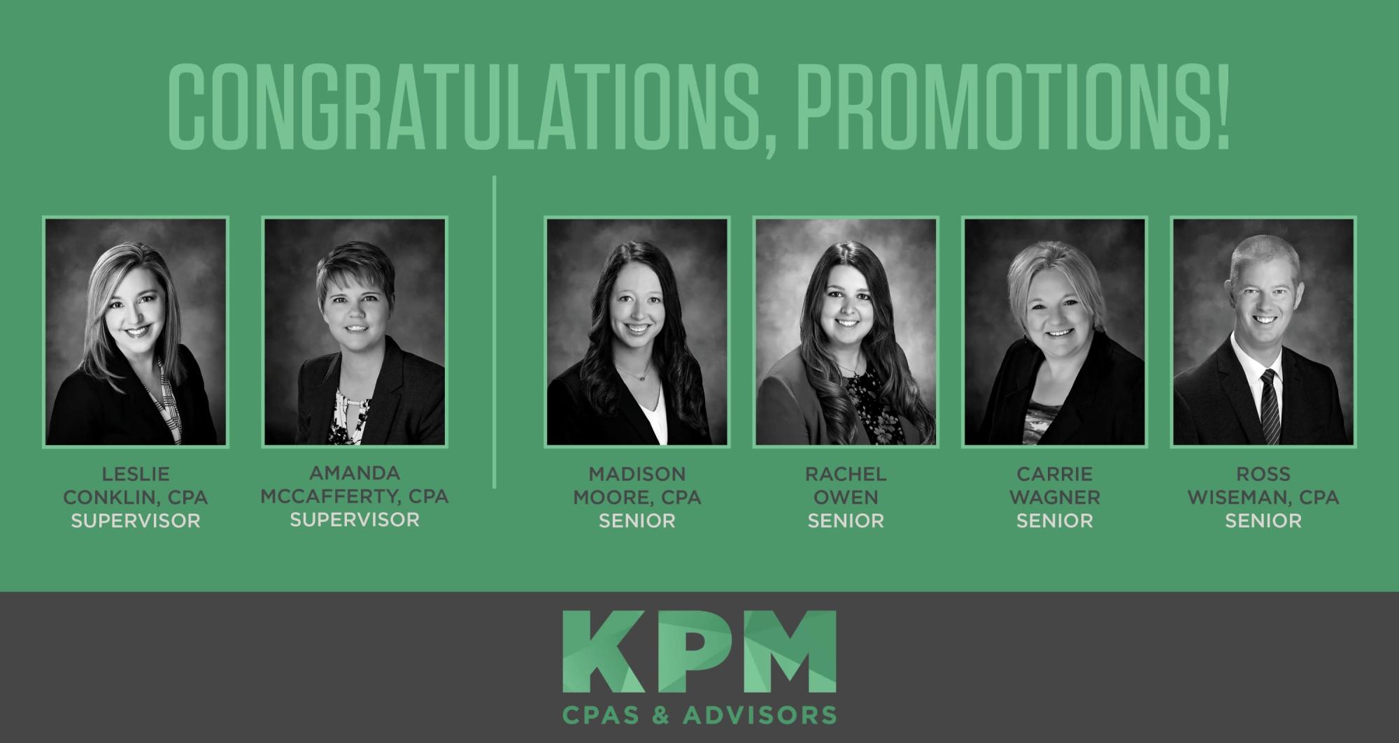 Springfield, MO – KPM CPAs & Advisors (KPM) is pleased to announce the following staff promotions: