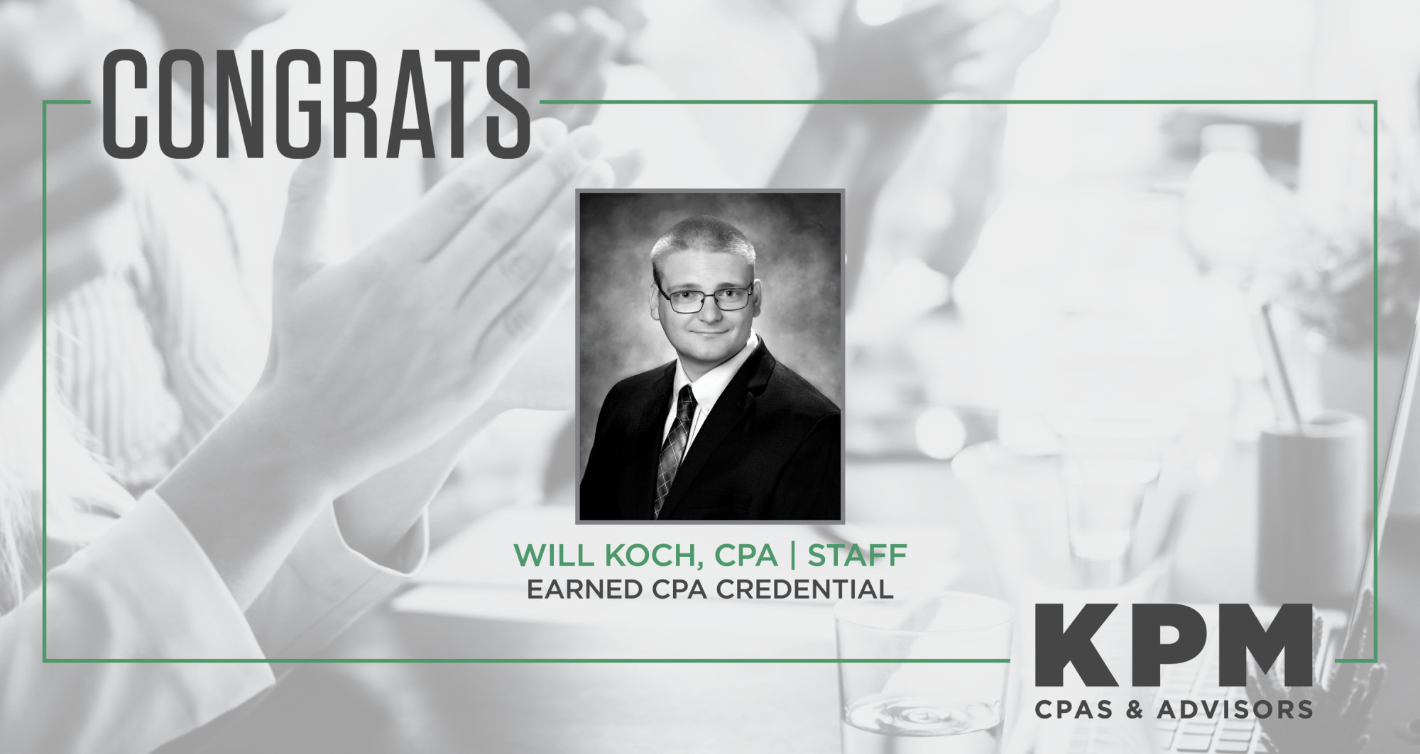 KPM CPAS & ADVISORS ANNOUNCES CPA DESIGNATION FOR WILL KOCH
