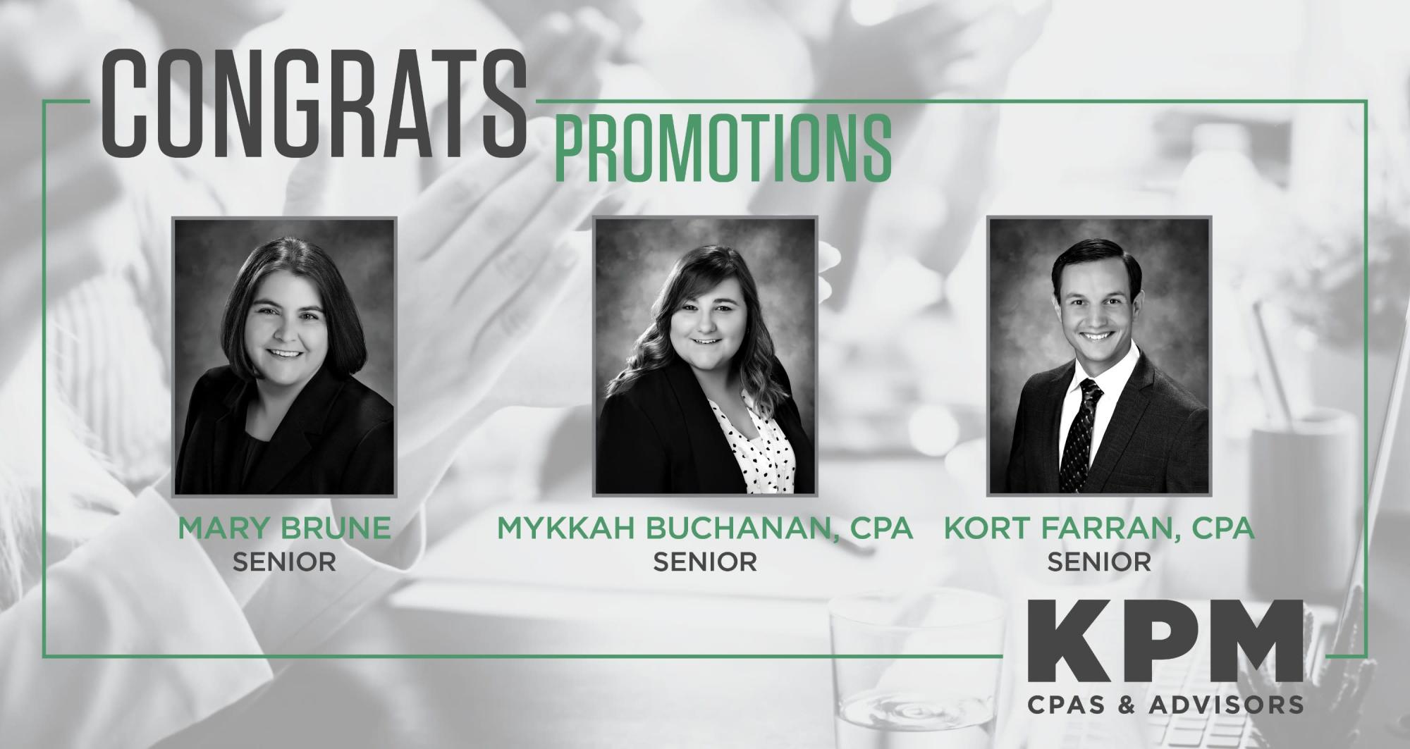 Springfield, MO – KPM CPAs & Advisors (KPM) is excited to announce the following promotions: